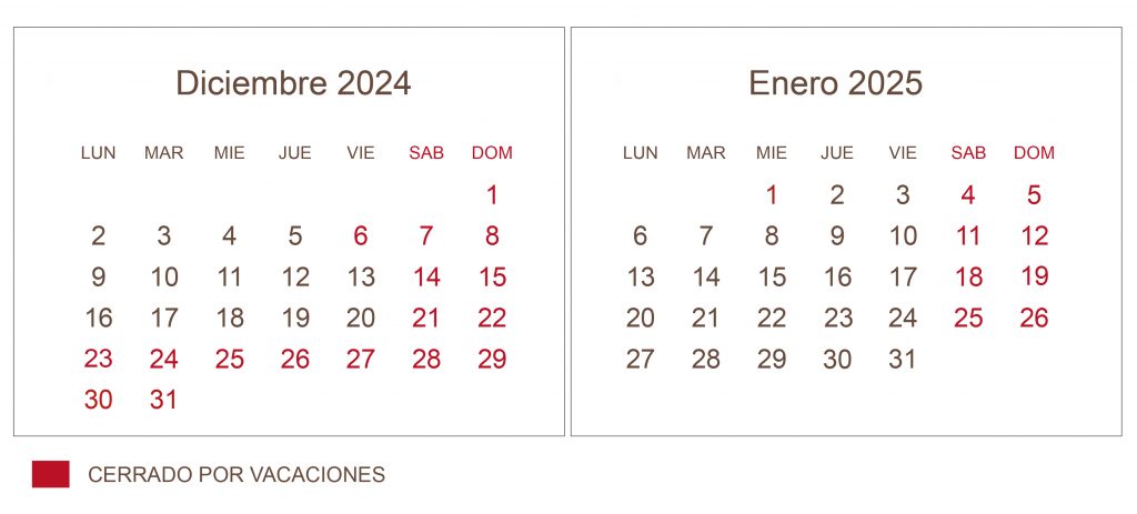Desde Agencia Comercial Mondragón os informamos que la empresa permanecerá cerrada el 6 de Diciembre por el día de la Constitución, del 23 de Diciembre de 24 al 1 de Enero de 2024, ambos inclusive, por vacaciones de Navidad y el día 6 de Enero por el día de Reyes.